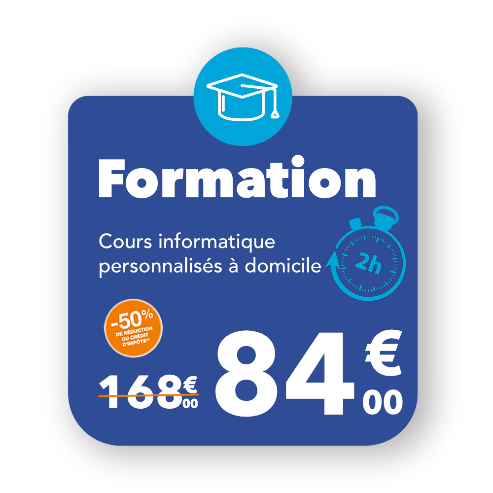 FORMATION INFORMATIQUE À DOMICILEBesoin de maîtriser un nouvel appareil informatique, de vous perfectionner ou d'apprendre à réaliser un ensemble de tâches importantes sur votre smartphone, tablette ou PC ?Nous vous proposons des cours à domicile OU via partage d'écran à distance pour prendre en main vos différents appareils.Lors de l'ensemble de nos prestations, le technicien vous conseillera sur les "bonnes pratiques" et le choix de logiciels pouvant vous simplifier vos travaux. Une préférence sera donnée aux logiciels libres (utilisation gratuite et sans coût de licence).